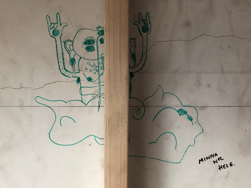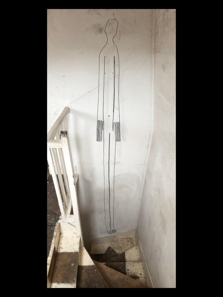 The “Attic Spirit” above the stairs definitely needed preserving- a representation of daring, parental defiance and quite skilled drafting whilst in the midst of giving very occasional assistance. It can still be faintly seen – even more ghost-like- behind one coat of paint.