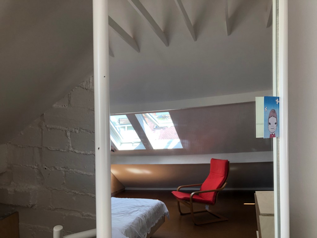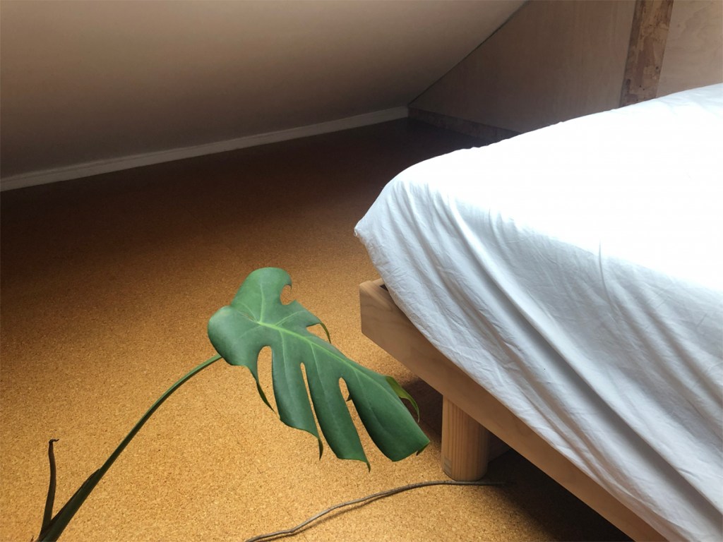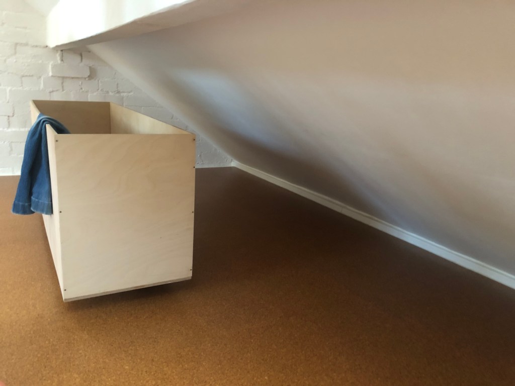 But emptiness sometimes needs a counterpoint object to create spatial harmony- this clothes trough on rollers from leftover plywood has the right presence and has the valuable function as a clothes dump so deep that they most often can’t be seen- or remembered!