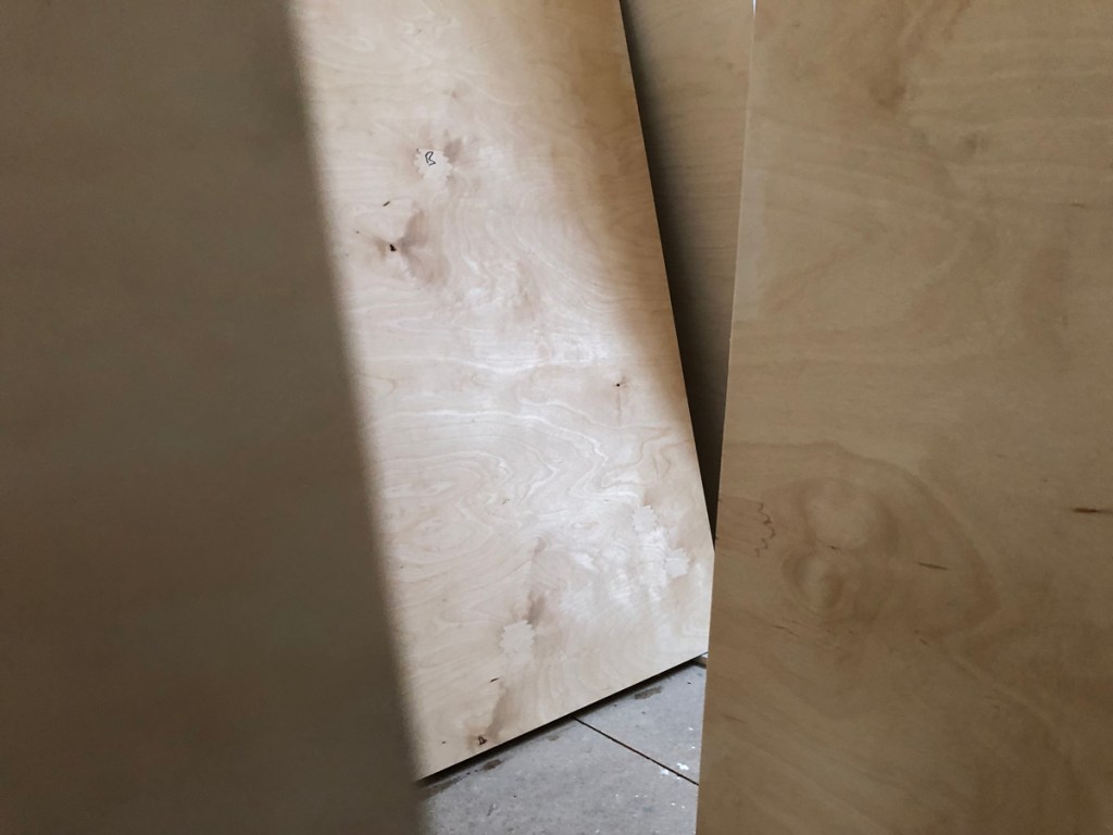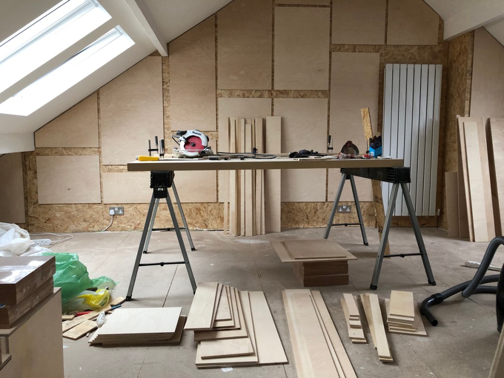 So how to cover over all of this, remembering that it is a feature wall? It was always going to be birch ply having first seen some lined interiors when it was coming into fashion back in the noughties.