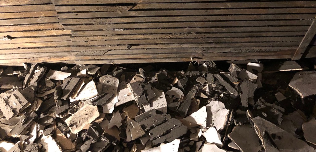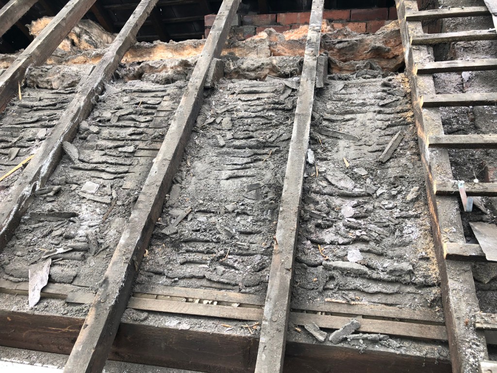 All had to be stripped off and was being done in parallel with the work of two roofers.