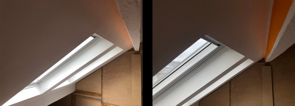 The west facing Velux windows finally delivered the sunlight I’d dreamed about for more than a decade, delayed satisfaction after prohibitive cost and lack of time for a self-build became seasoned excuses delaying this moment.
